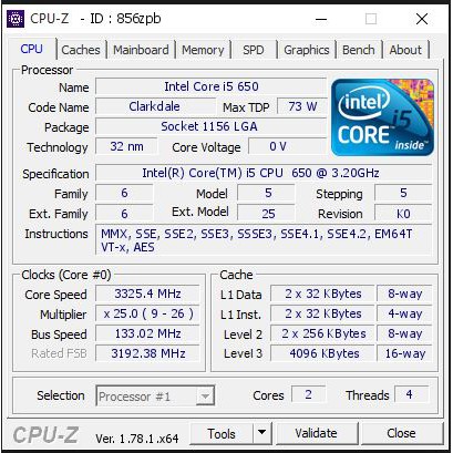 Intel Core I5 650 3324 5 Mhz Cpu Z Validator