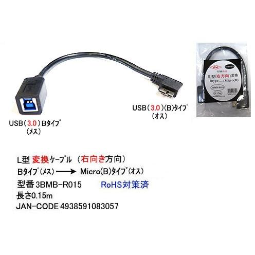 Usb3 0 タイプb メス Microb タイプb オス L型 変換ケーブル 黒 15cm Uc 3bmb R015 3bmb R015 ミルフォード 通販 Yahoo ショッピング