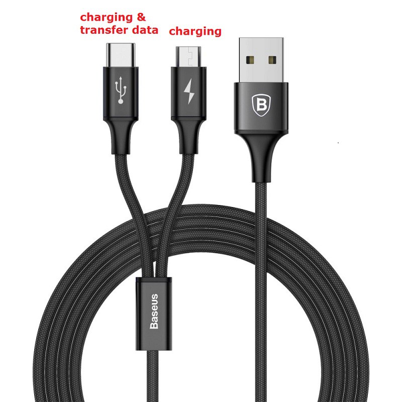 Baseus Rapid Series 1 2m 2 In 1 Micro Usb Type C Port Charging Data Cable Black Shopee Malaysia