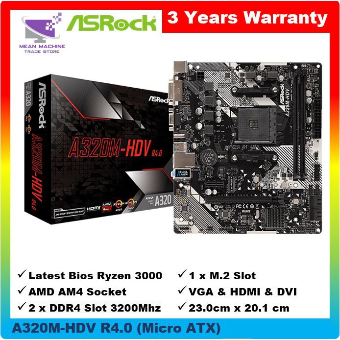 Asrock A320m Hdv R4 0 Am4 Micro Atx Motherboard Bios Support Ryzen 3000 Series Latest Shopee Malaysia