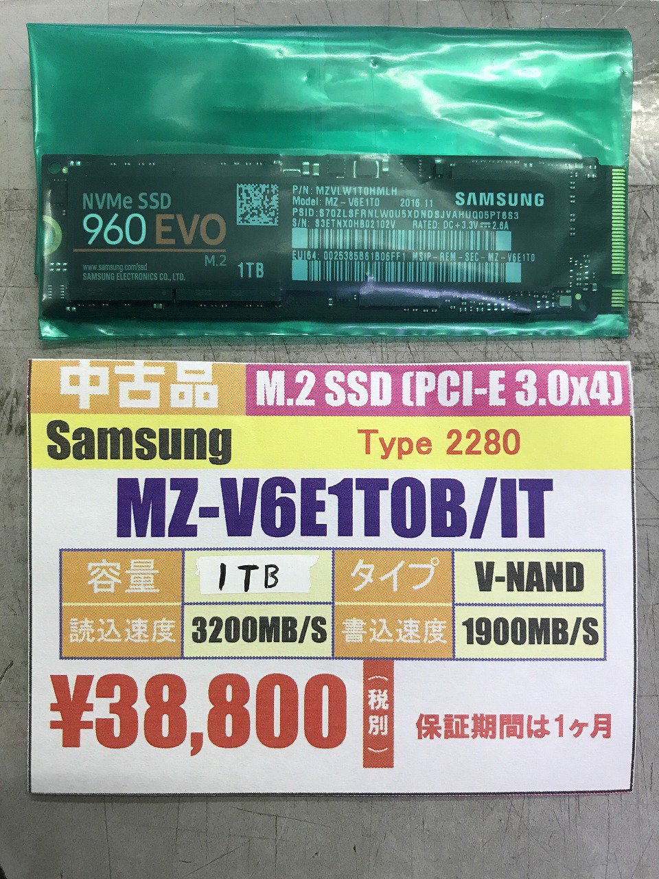 ট ইট র ツクモ名古屋1号店 中古パーツ 今をときめく M 2 Ssdの中古が入荷してきました Samsungさんのmz V6e1t0b Itです 高耐久 高信頼 そして1tbと大容量 Readが3 200mb S 理論値 も出るのに お値段なんと 38 800 税別 使用期間1ヶ月以内の