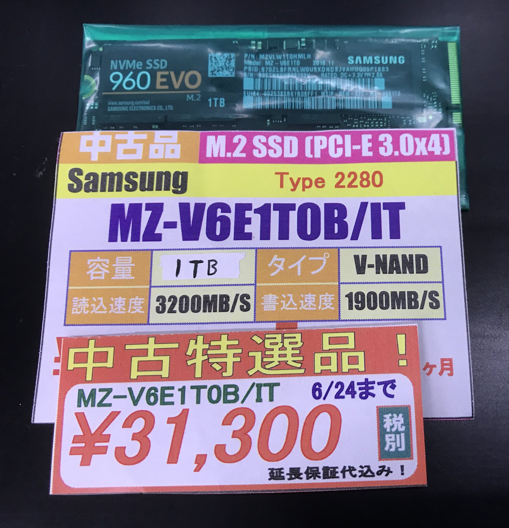 ツクモ名古屋1号店 On Twitter 中古パーツ 今日までの特価 M 2 Ssdの 1tbモデルが安い Mz V6e1t0b It 31 300 税別 中古3年延長保証付き 自作pc Pcパーツ