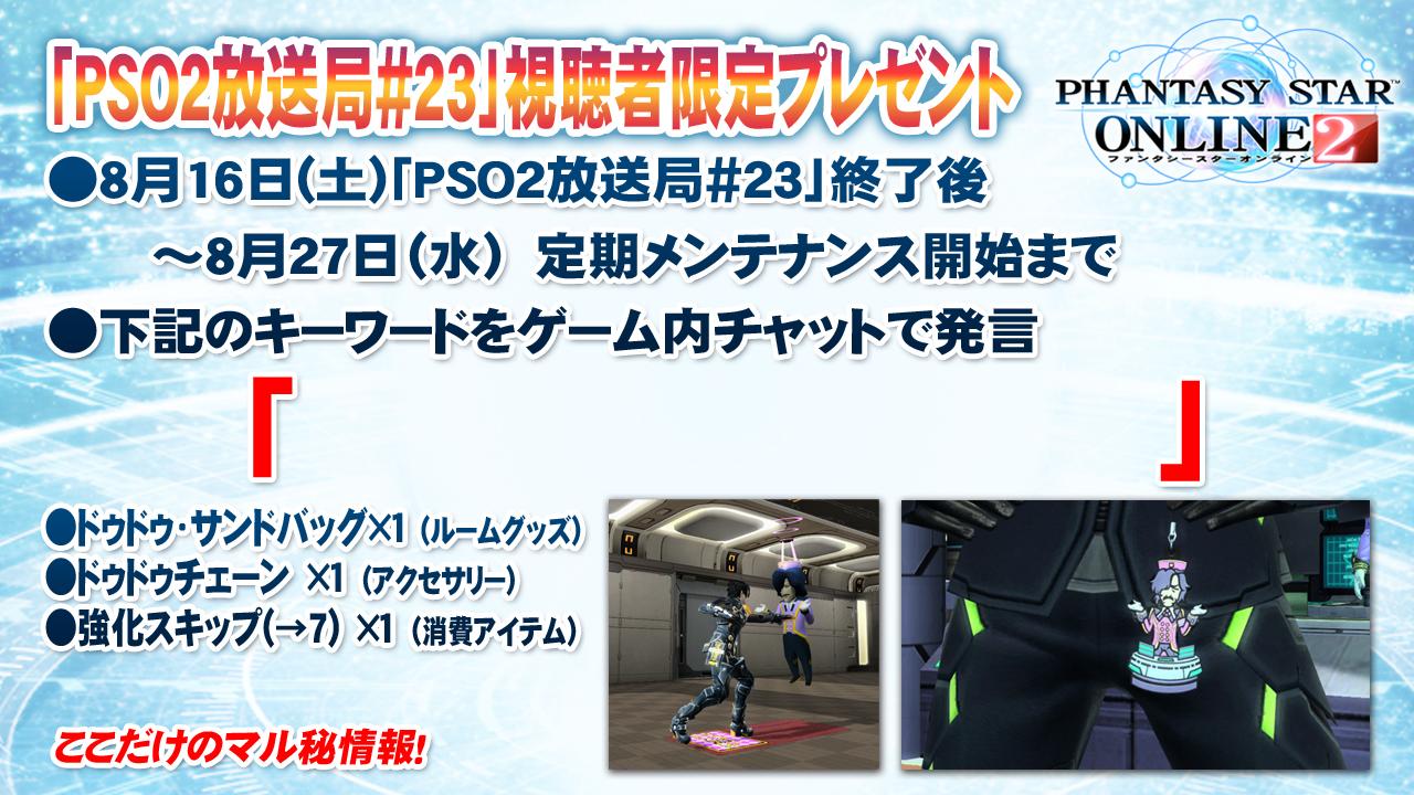 Phantasystaronline2 On Twitter Pso2 放送局 第23回放送中 本日のキーワードプレゼントは 全アークス待望の新アイテム ドゥドゥパンチング ドゥドゥチェーン に強化スキップ 7 のドゥドゥスペシャル キーワードは番組最後 Pso2 感謝祭2014 Http