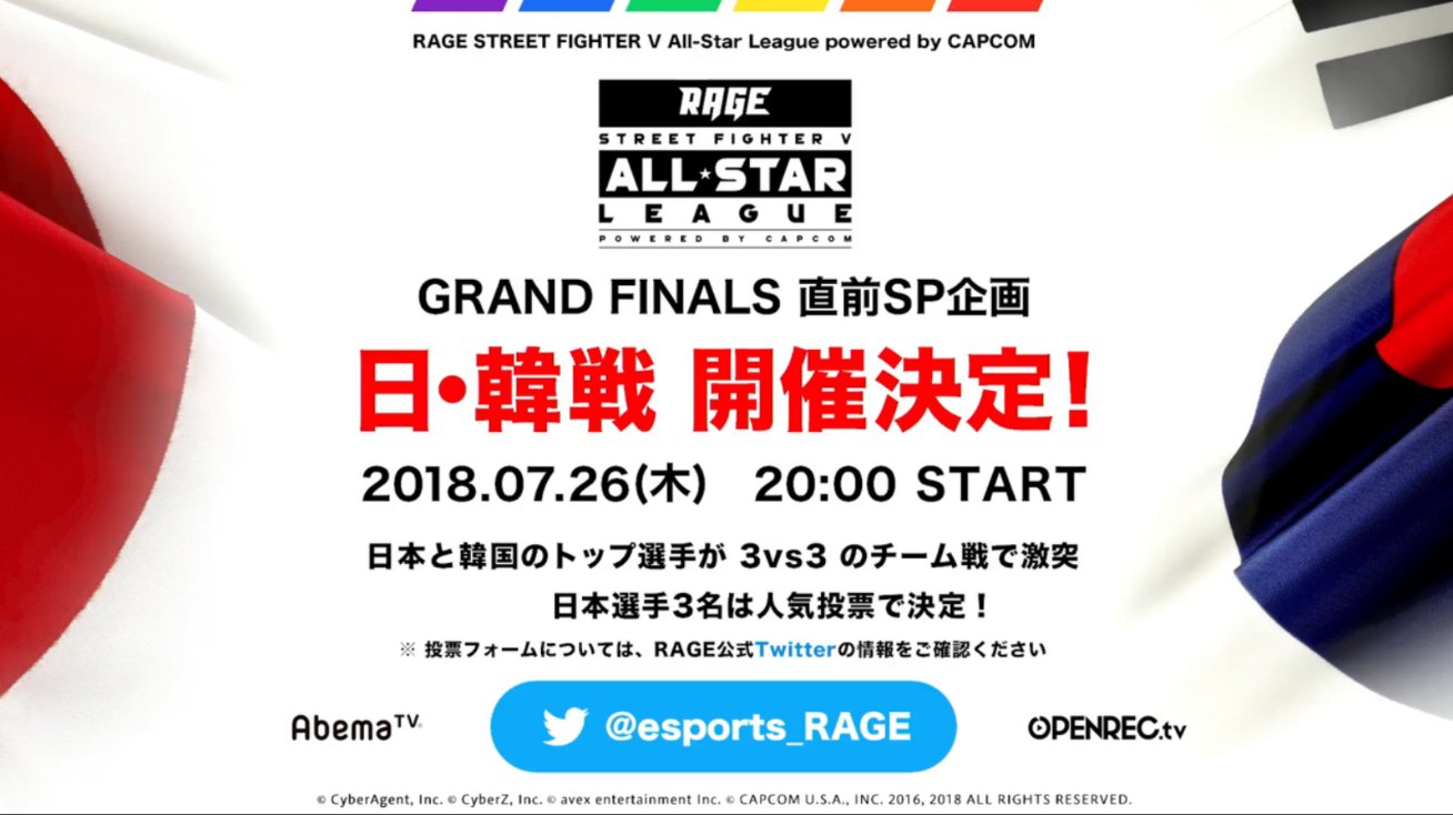 Hifight ハイファイト On Twitter Special Japan Vs S Korea 3v3 Match Will Be Held Before Grand Final Of Rage Sfv All Star League 7 26 3 Japanese Players Will Be Chosen By Voting Https T Co 9mz4i7q7ba